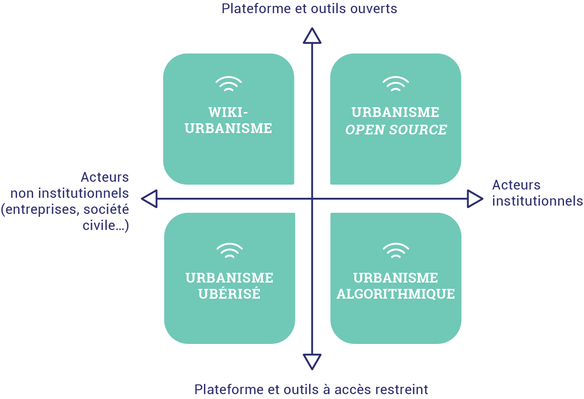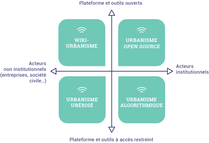 Schématiquement, quatre modèles de « ville intelligente » influencée par les TIC peuvent être dessinés.
